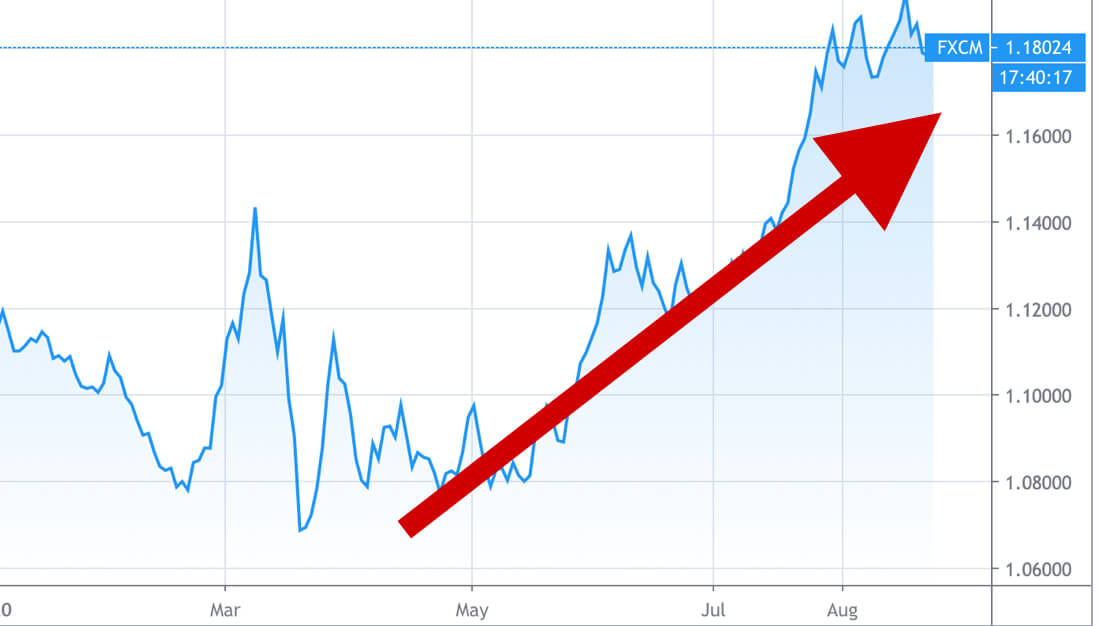自2020年5月中旬以來,歐元/美元強勁上漲,並且處於明顯上升通道中。